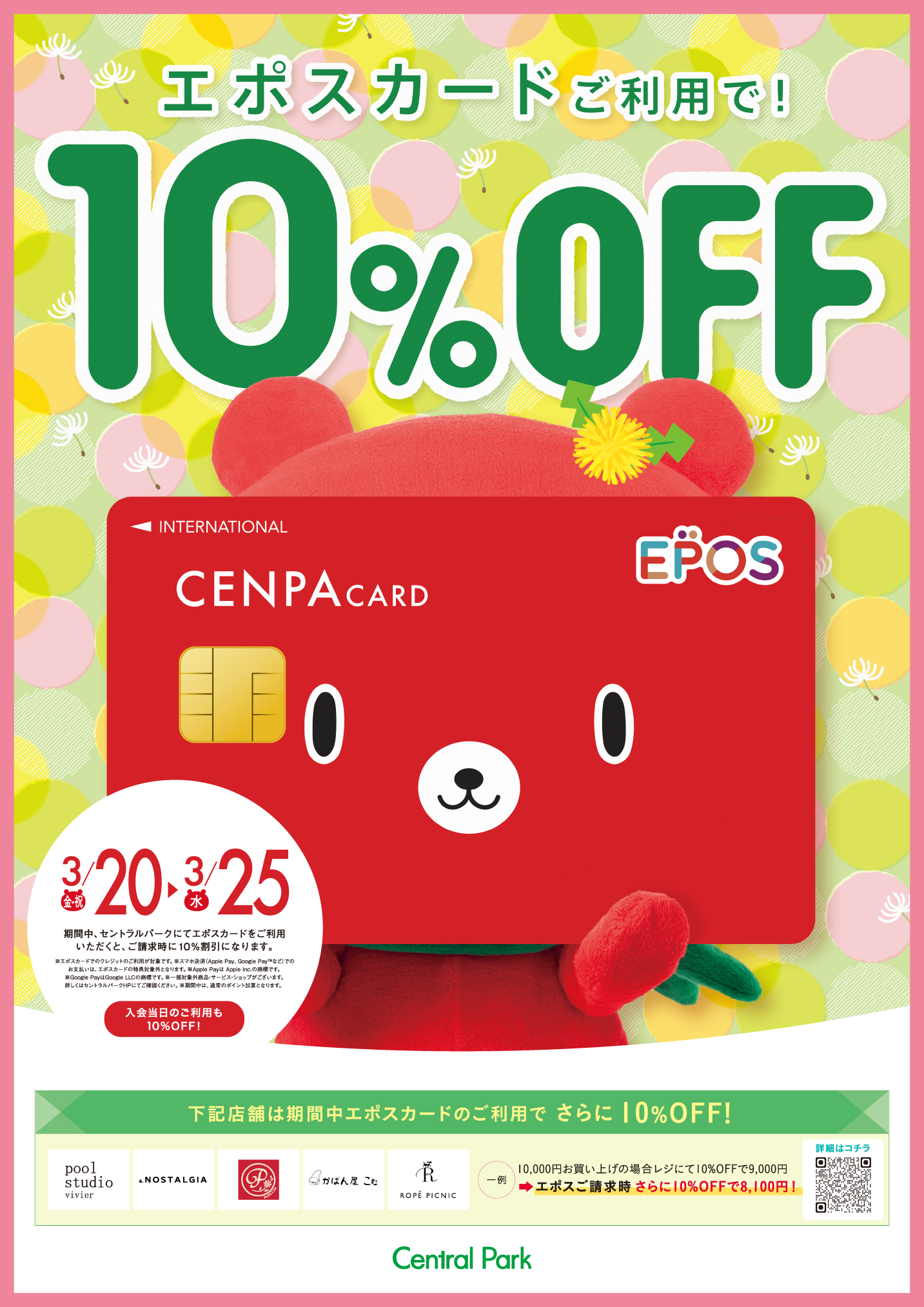 11月21日(金)~11月25日(火)の5日間、セントラルパーク各店にてエポスカードをご利用いただくと、ご請求時に10%割引になります。