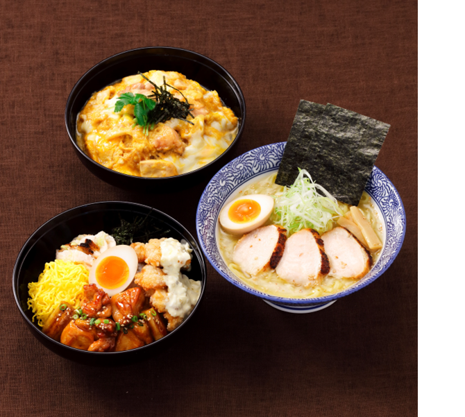 ふわとろの親子丼や伊達鶏を味わい尽くす鶏五味丼、こだわりの鶏白湯と店仕込みの鶏チャーシューを使用した鶏白湯そばなど多彩な鶏料理を取り揃えております。