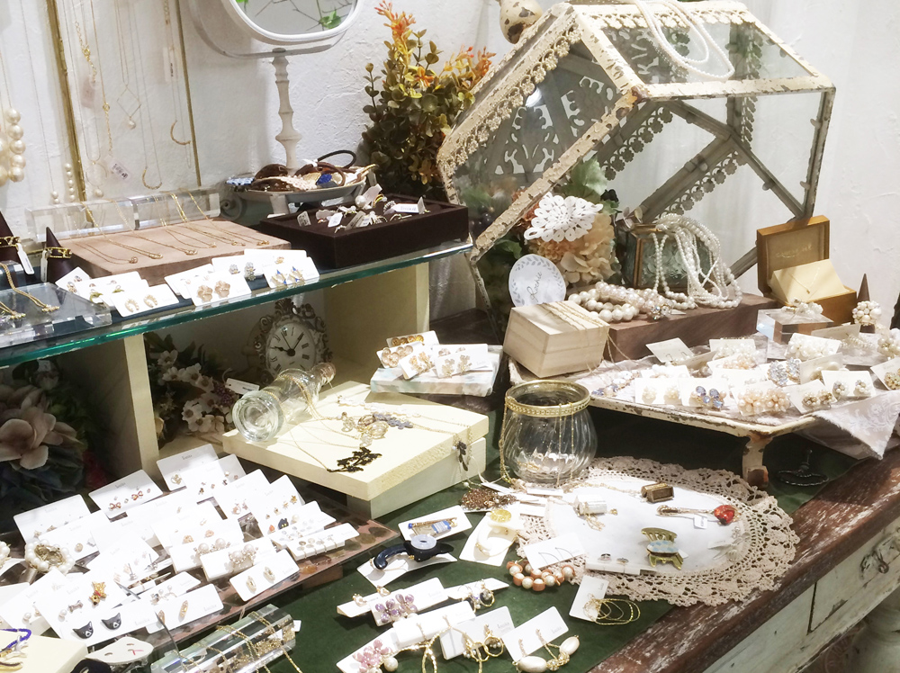 アトリエをイメージした店内に、高感度なライトジュエリーから個性派アクセサリーまで幅広く取り揃え。