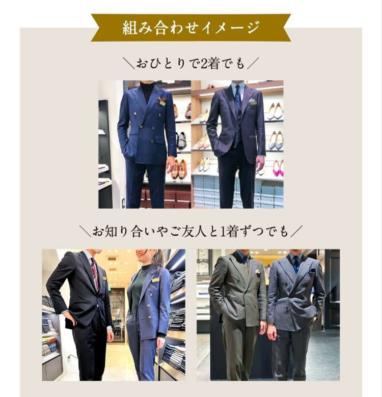 初めてオーダースーツを体験する方はご友人やご家族とコンビ価格をシェアすることも◎