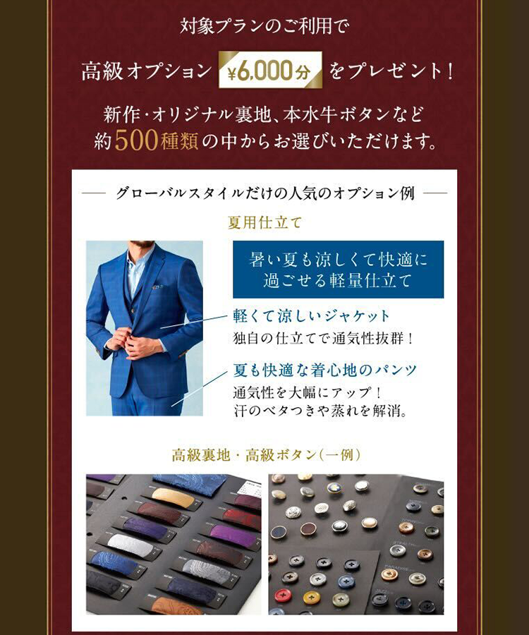 【高級オプション6,000円分無料】オーダースーツ2着52,800円~