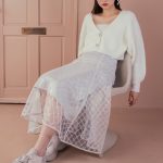 華やかでフェミニンなディティールと、スポーティーなボリュームソールスニーカーのコントラストがトレンド感のあるスタイルへと導いてくれます。