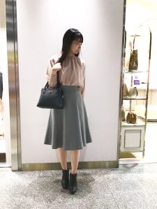 柔らかな風合いのスモッキングブラウスは、一枚あれば