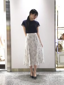 線画調の花柄スカートと合わせて、エレガントな仕上がりに。
