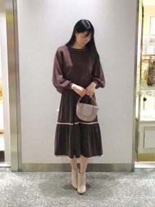 今回はニットを上にして着用しておりますが、キャミワンピの下にインナートップスとして着て頂いても可愛いですよ!