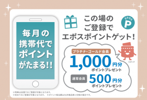 ※エポスポイントは2025年1月中旬頃に加算いたします。※「JQ CARDエポス」をお持ちのかたは、エポスポイントではなく「JRキューポ」が貯まります。※「JRキューポ」は記載されている「ポイント加算時期」に対し、原則1~2ヵ月半ほど遅れて加算されます。
