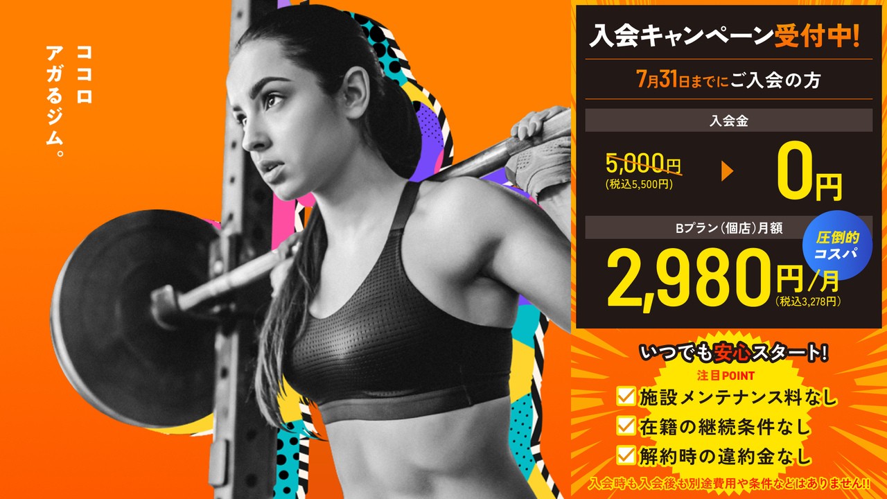 7/31(月)までにご入会の方、入会金5,000円(税込5,500円)が0円‼