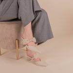さりげなくハート刺繡を施した大ぶりシアーリボンが女性らしいミュールパンプス。