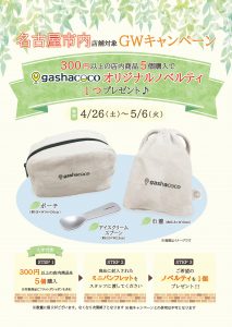 300円以上の店内商品5個購入でgashacocoオリジナルノベルティ1つプレゼント