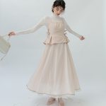 フレアスリーブとプチハイネックが、クラシカルで女性らしいディテールに。