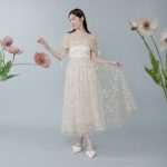 繊細なチュールに、フラワー×パールのチュールを重ねたドレスライクな1枚。