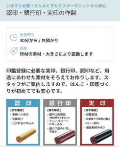 Shop Newsショップニュース 2026.03.02 ハンコ・印鑑作製いたします! MISTER MINIT もどる MISTER MINIT ミスターミニット No.1サービス・その他電話番号:052-951-4163営業時間:10:00~21:00 (日曜祝日は10:00~20:00) ショップページへ もどる