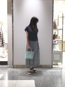 フロントチュールのロゴTと、刺繍見えプリーツスカートで休日コーデ。
