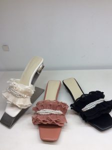 程よくボリューム感のあるフリルに、細かなパールパーツを施した華やかなフラットサンダルです❤︎クリアヒールで大人っぽさもある一足です(^^)