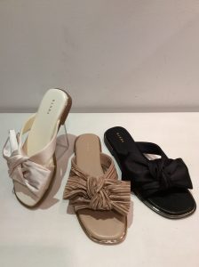 サテン生地の大人っぽい結びリボンで、カジュアルになりすぎないフェミニン感のあるフラットサンダルです♪
