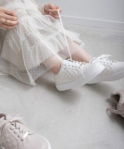 きらきらと輝く上品なビジューパーツが印象的なスニーカー。
