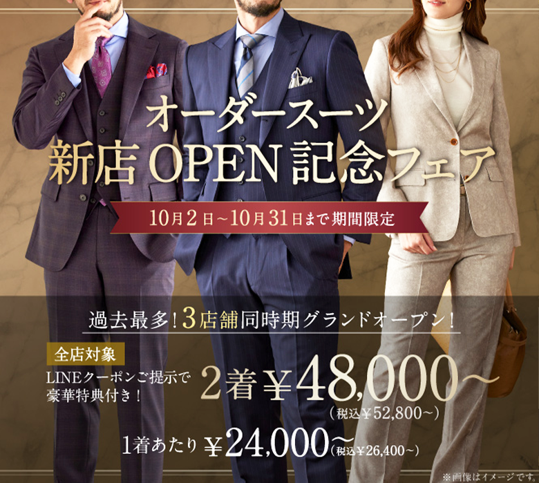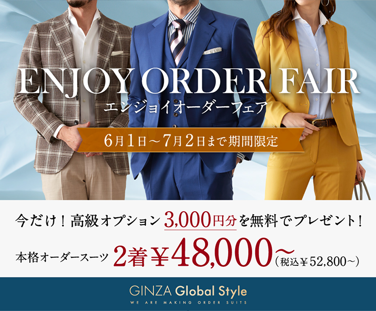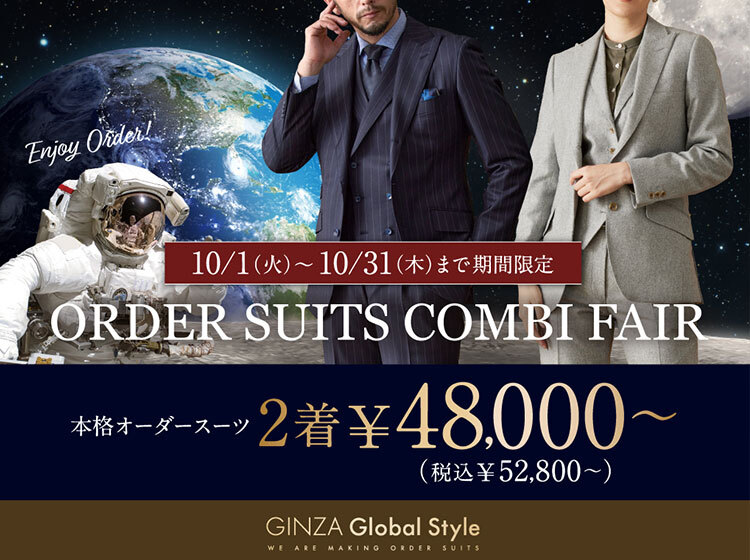 オーダースーツ2着で52,800円~フェア開催!【高級オプション特典プレゼント】