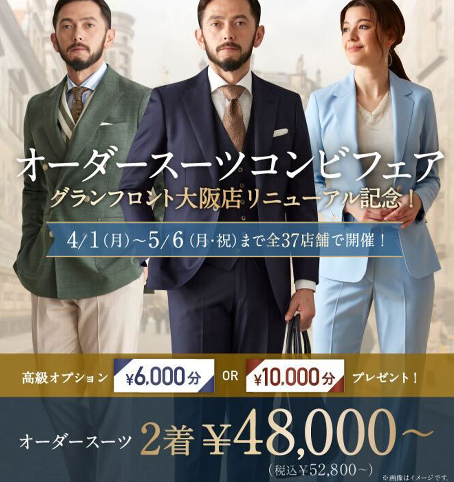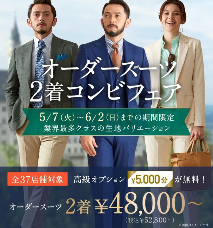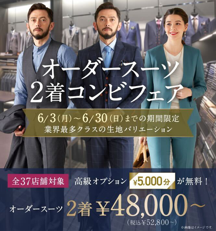 2着46,000円~(税込50,600円~)!オーダースーツコンビフェア