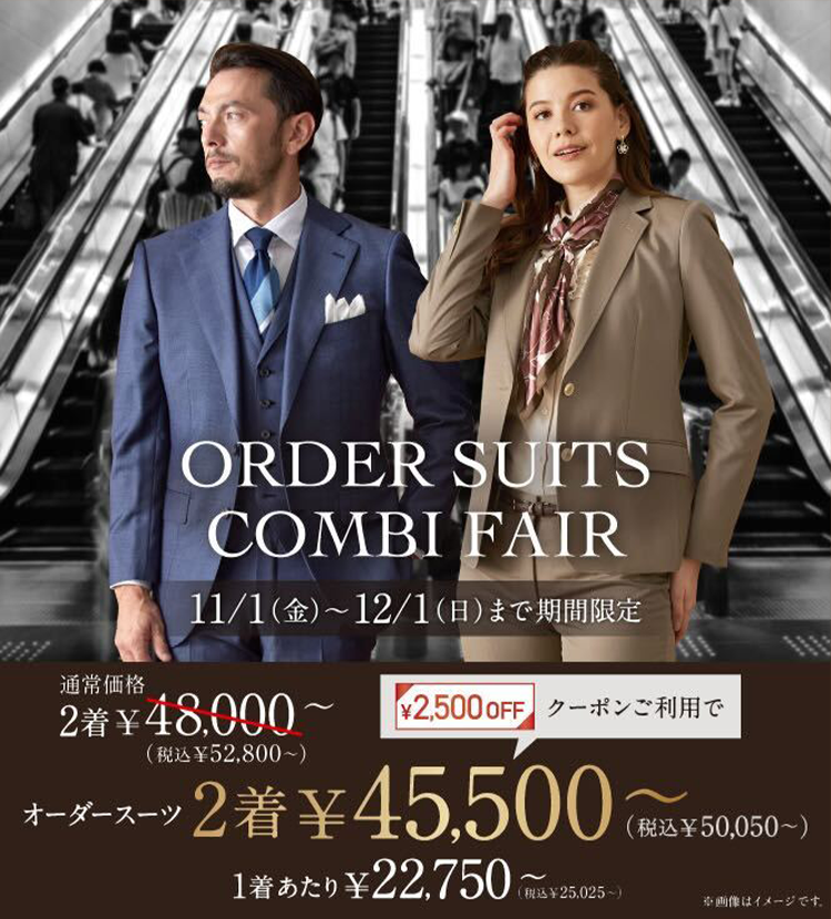 2,000円OFFクーポン付き!オーダースーツコンビフェア開催