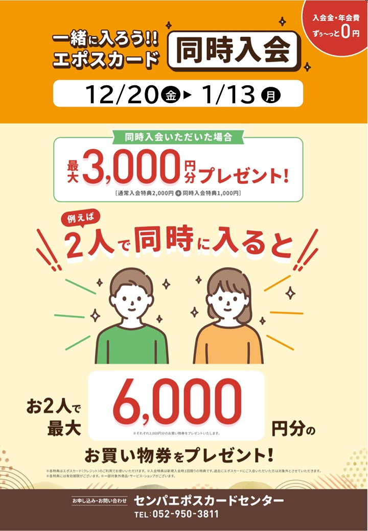 【エポスカード】同時入会キャンペーン開催