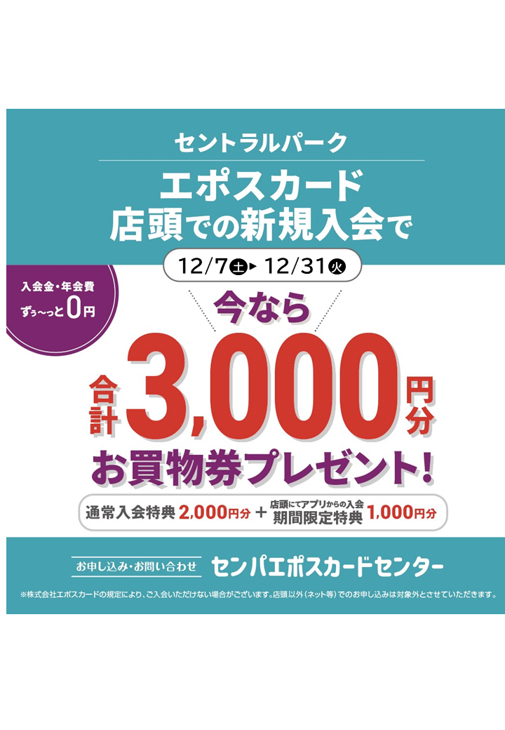 店頭での新規入会で3000円分のお買い物券プレゼント!